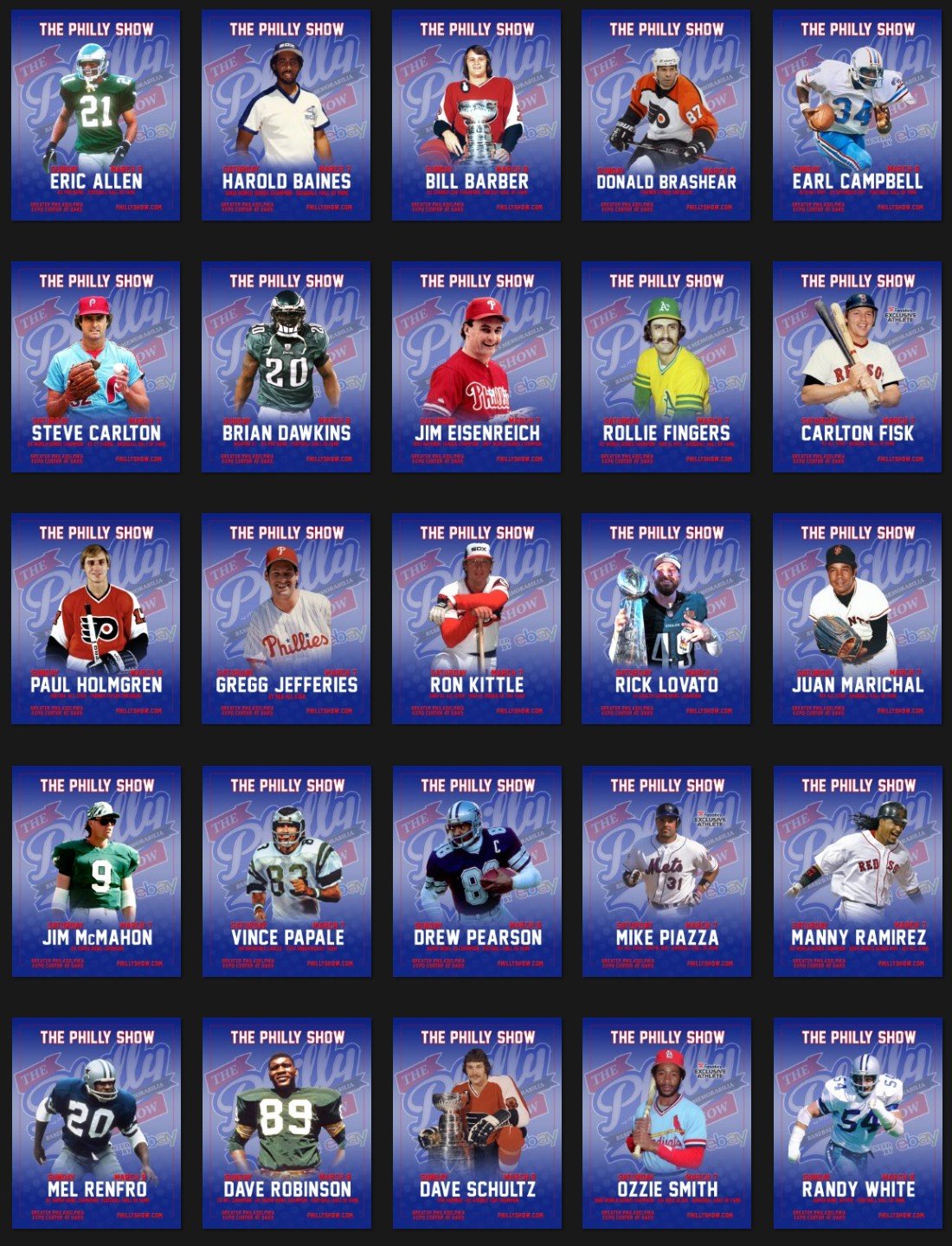 PHILLY SHOW | MIKE PIAZZA, MANNY RAMIREZ, RANDALL CUNNINGHAM, CARLTON FISK, STEVE CARLTON, ERIC ALLEN, HAROLD BAINES, EARL CAMPBELL, BRIAN DAWKINS, OZZIE SMITH, CHIPPER JONES, RAY LEWIS & MORE
